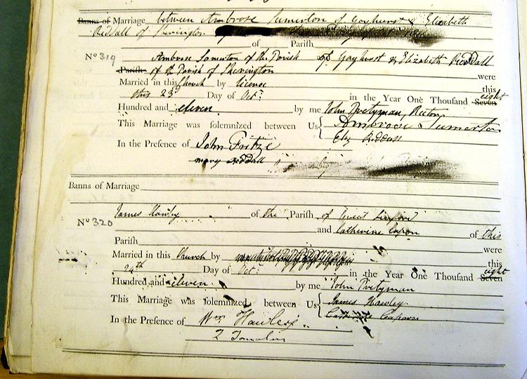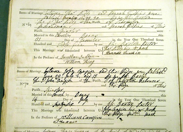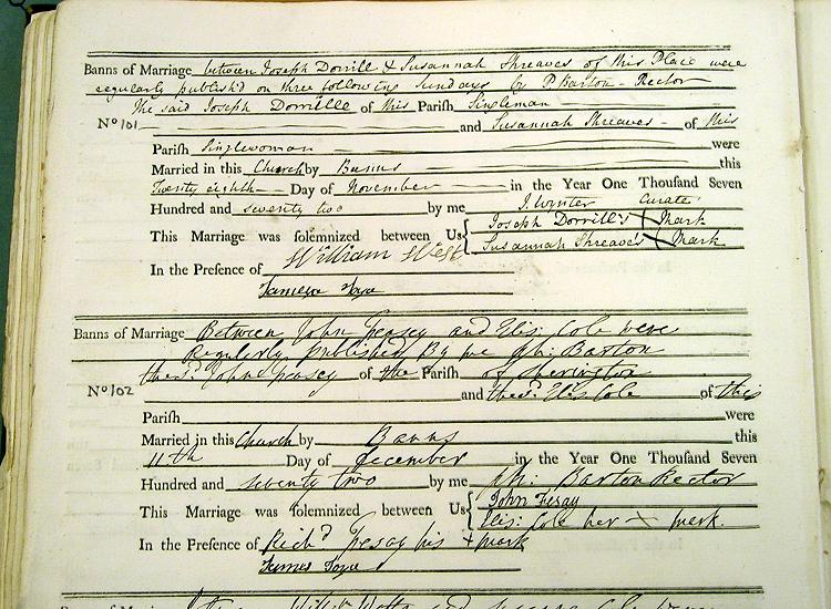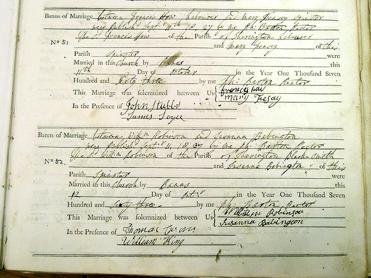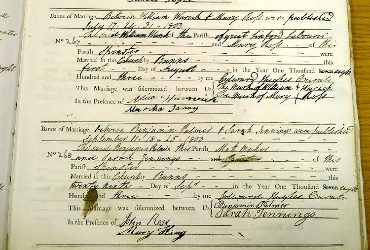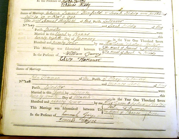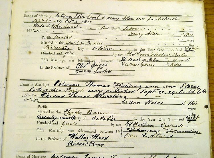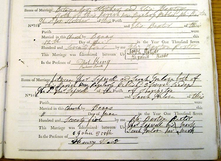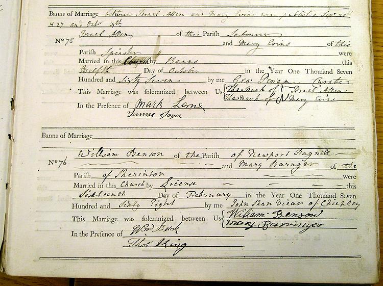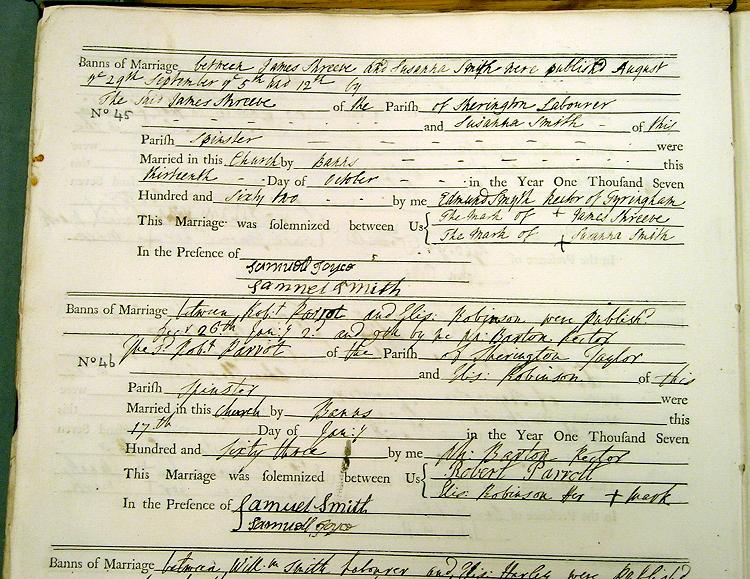 The St Laud’s Parochial Church Council has given Sherington Historical Society permission to take digital photographs of each page in all the Parish Registers, for use in family history research. However, entries less than 100 years old (i.e. after 1912) have not been copied.