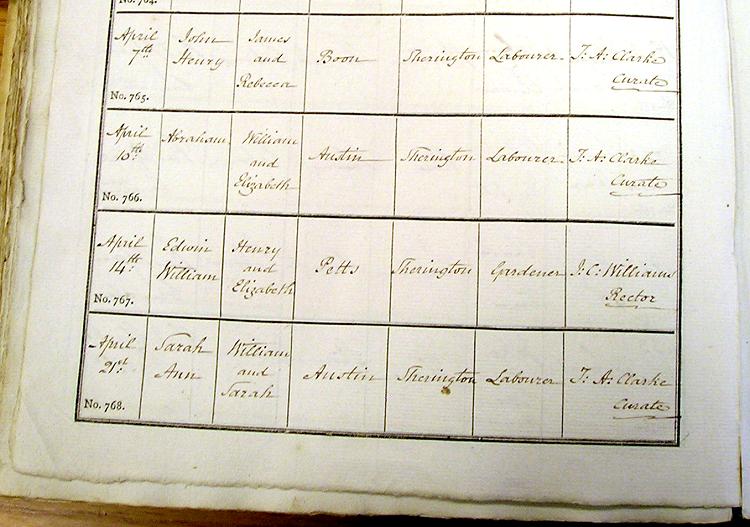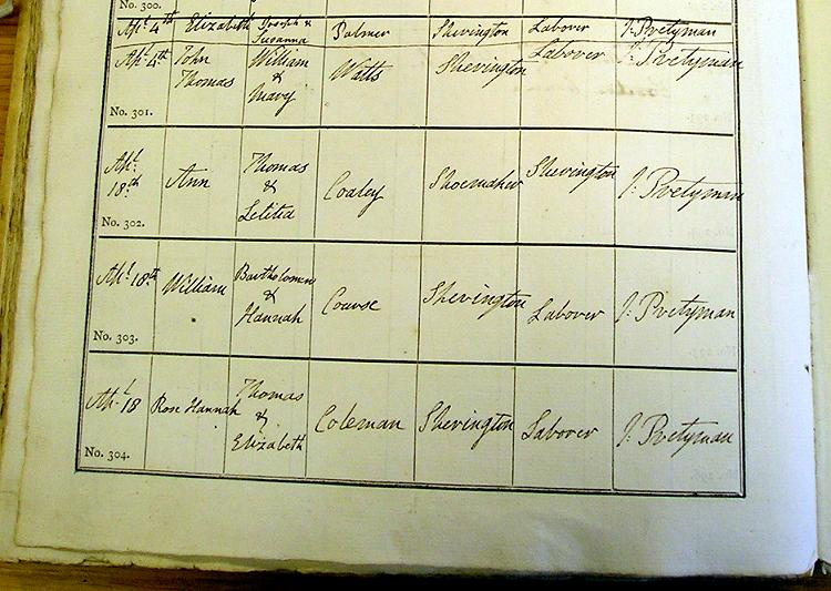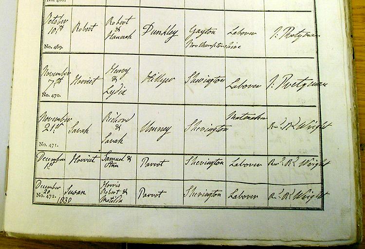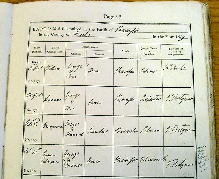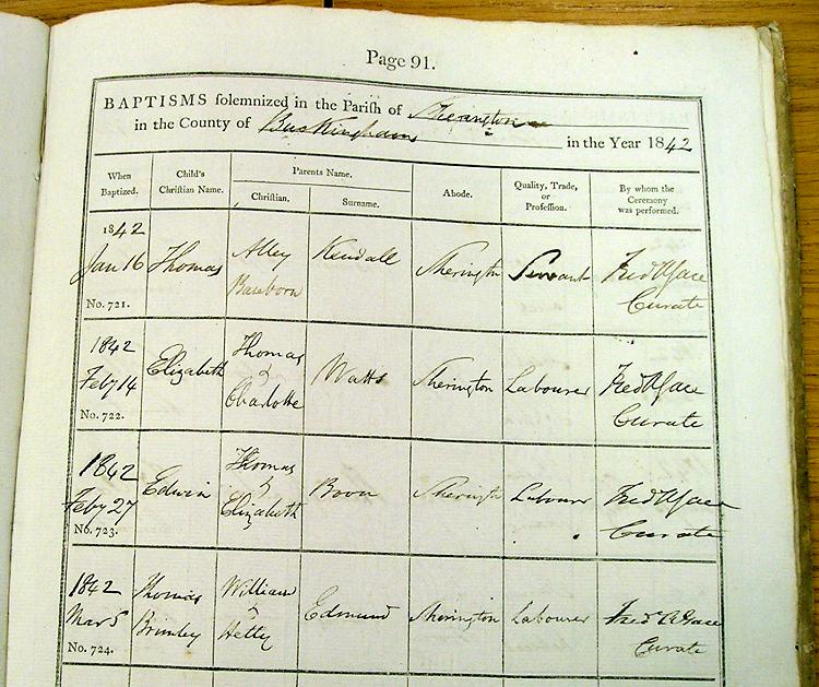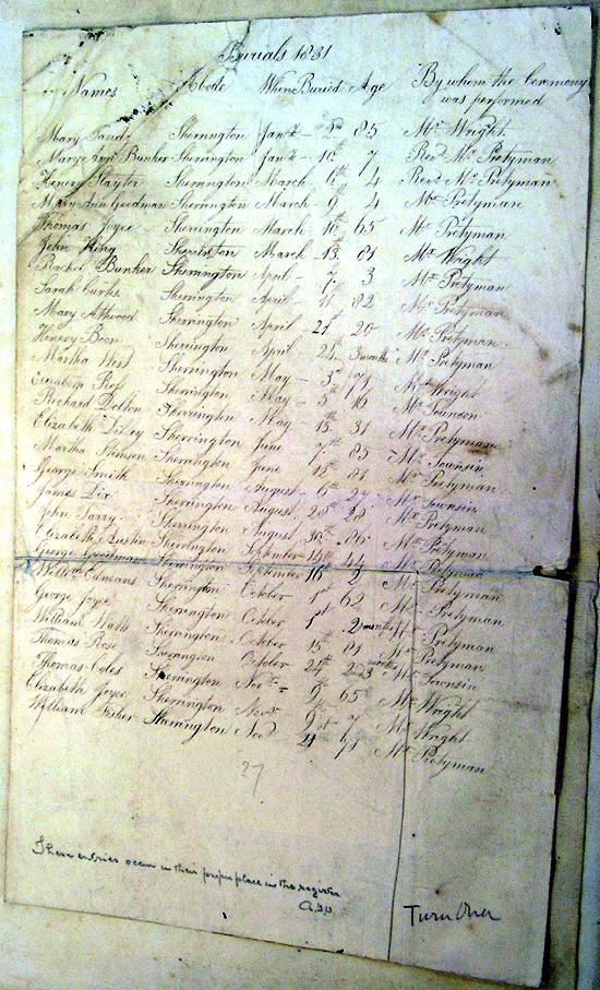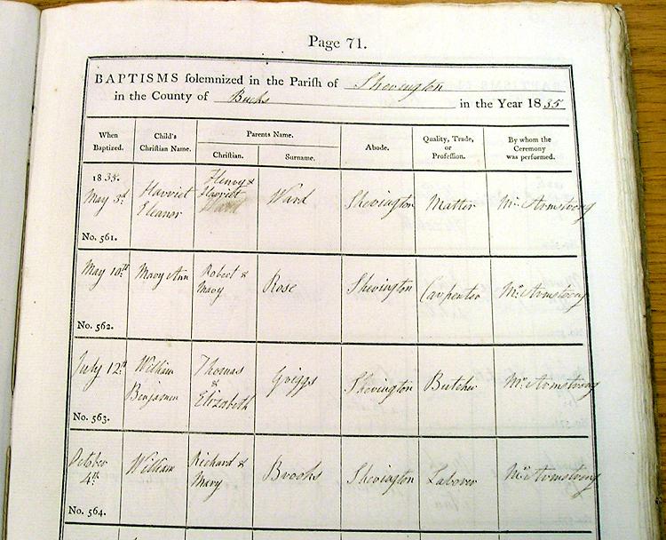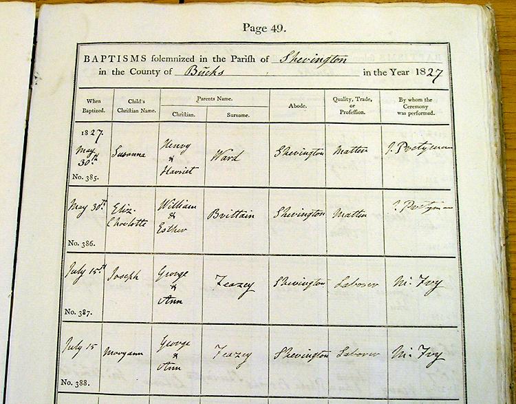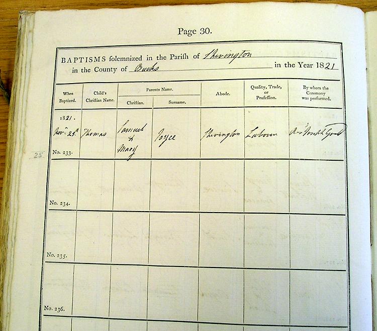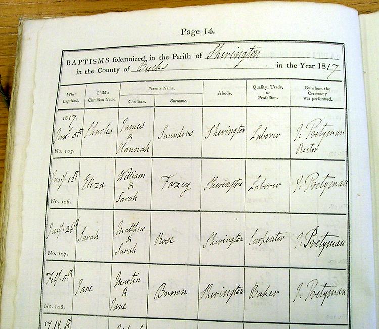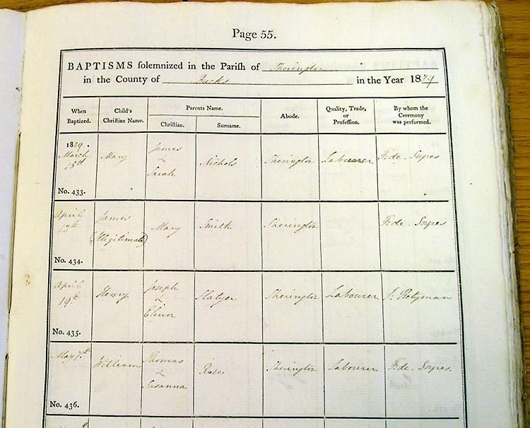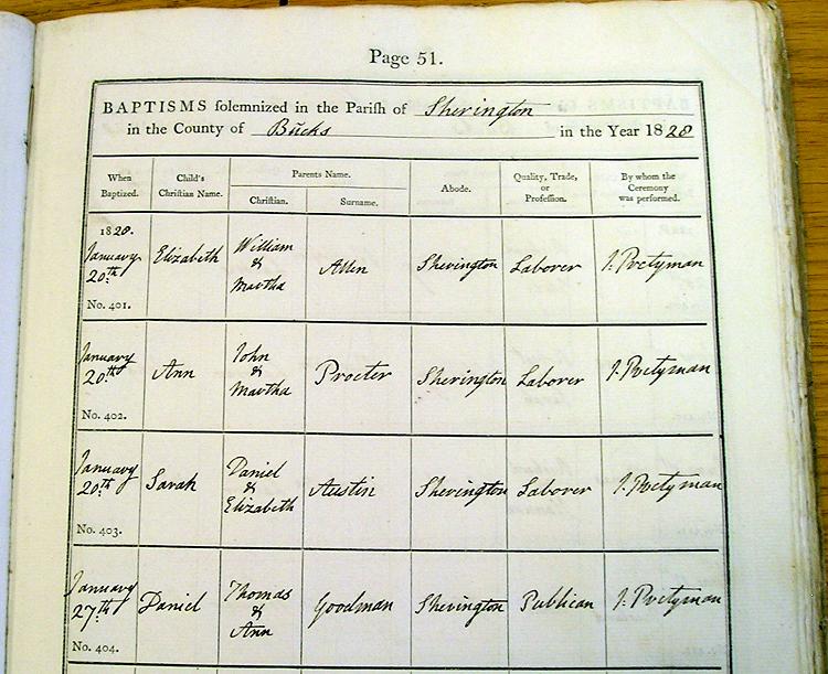 The St Laud’s Parochial Church Council has given Sherington Historical Society permission to take digital photographs of each page in all the Parish Registers, for use in family history research. However, entries less than 100 years old (i.e. after 1912) have not been copied.