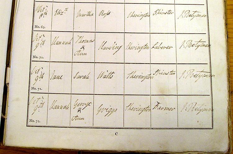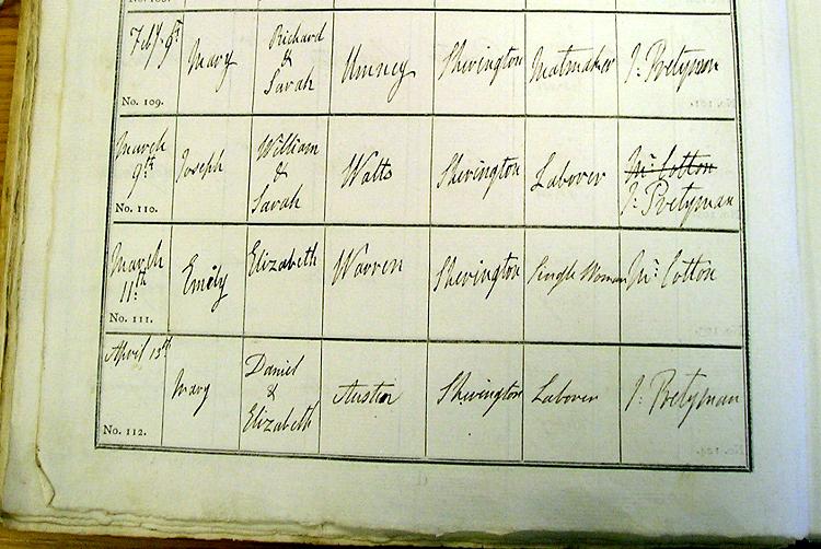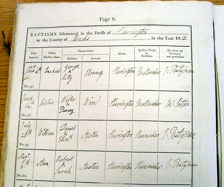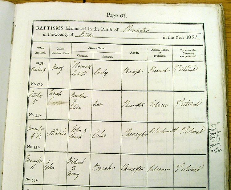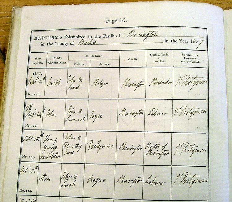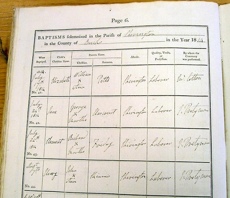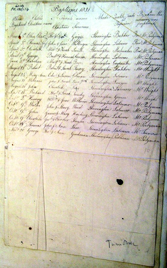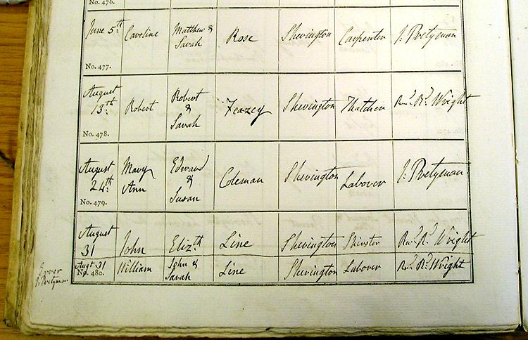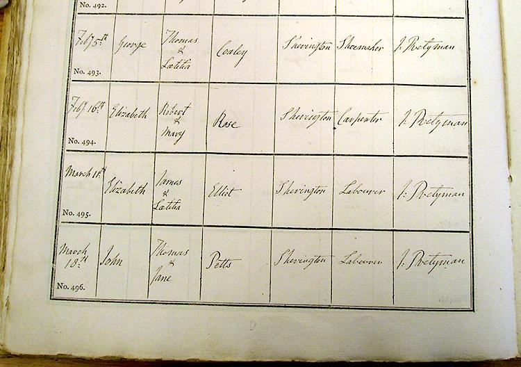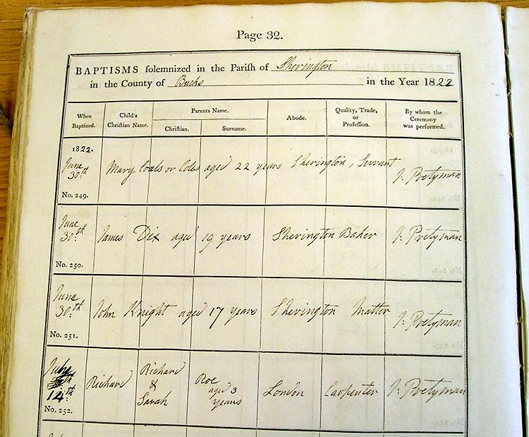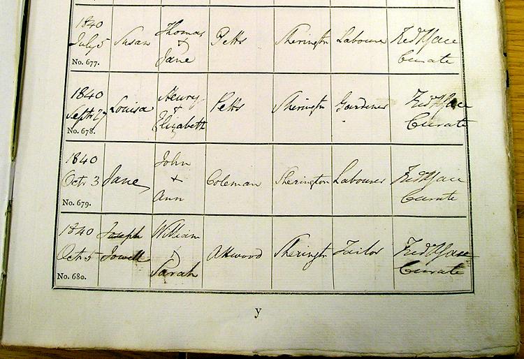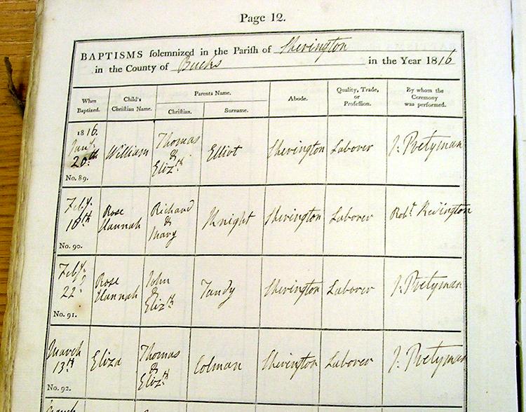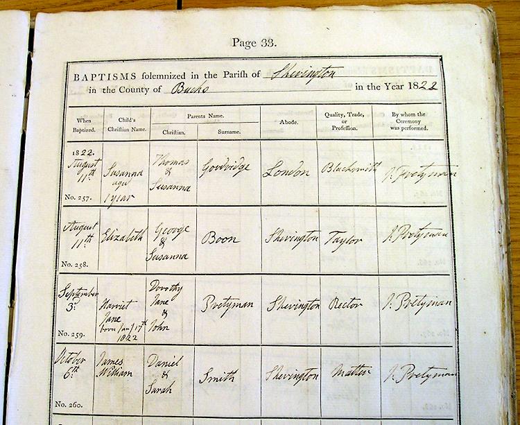 The St Laud’s Parochial Church Council has given Sherington Historical Society permission to take digital photographs of each page in all the Parish Registers, for use in family history research. However, entries less than 100 years old (i.e. after 1912) have not been copied.