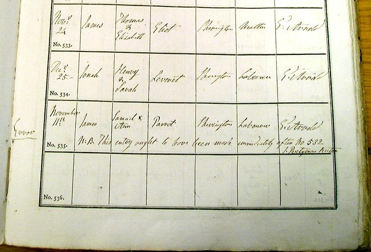 Parish Register Volume 4 Page initial 1 page 2 bottom