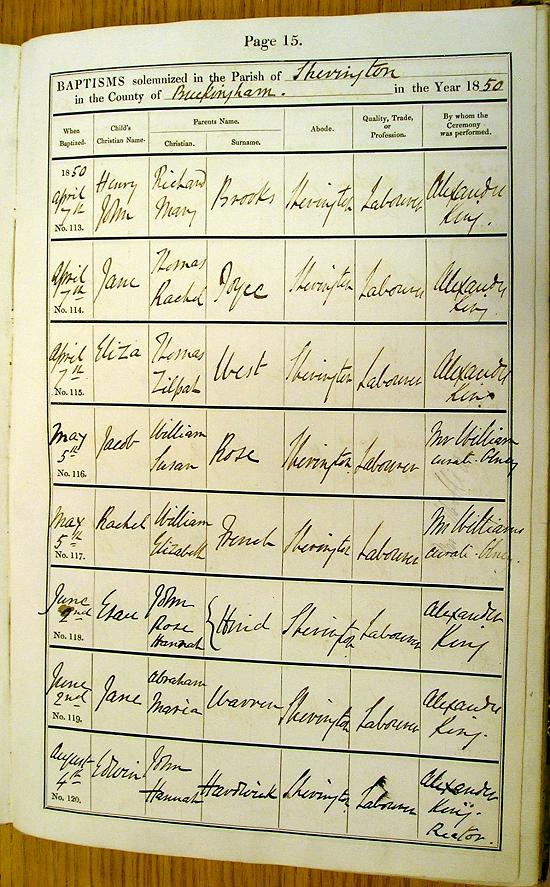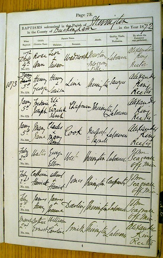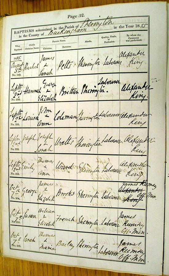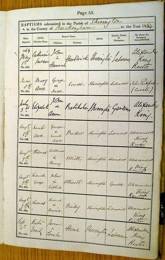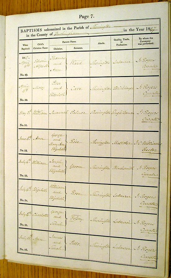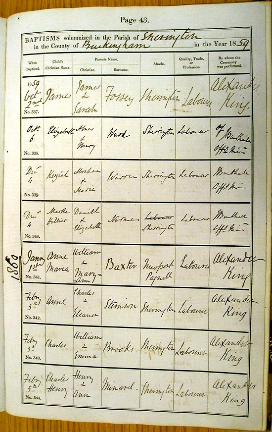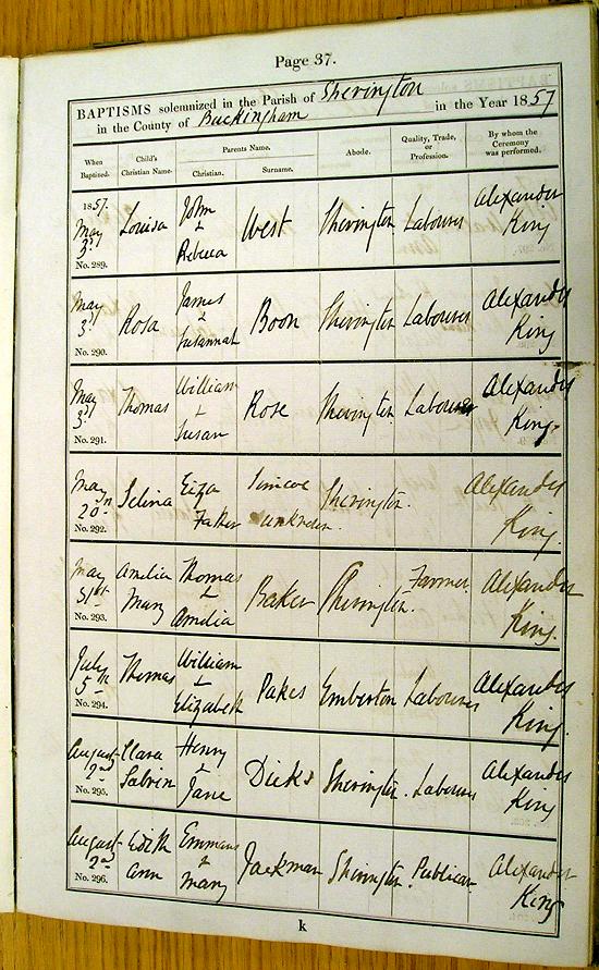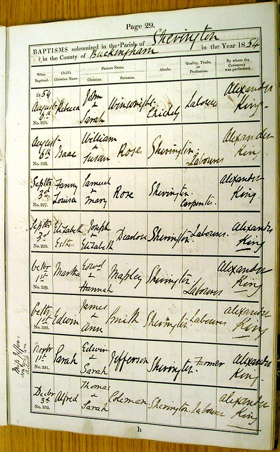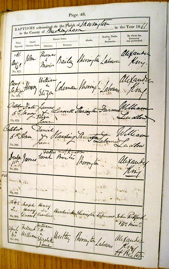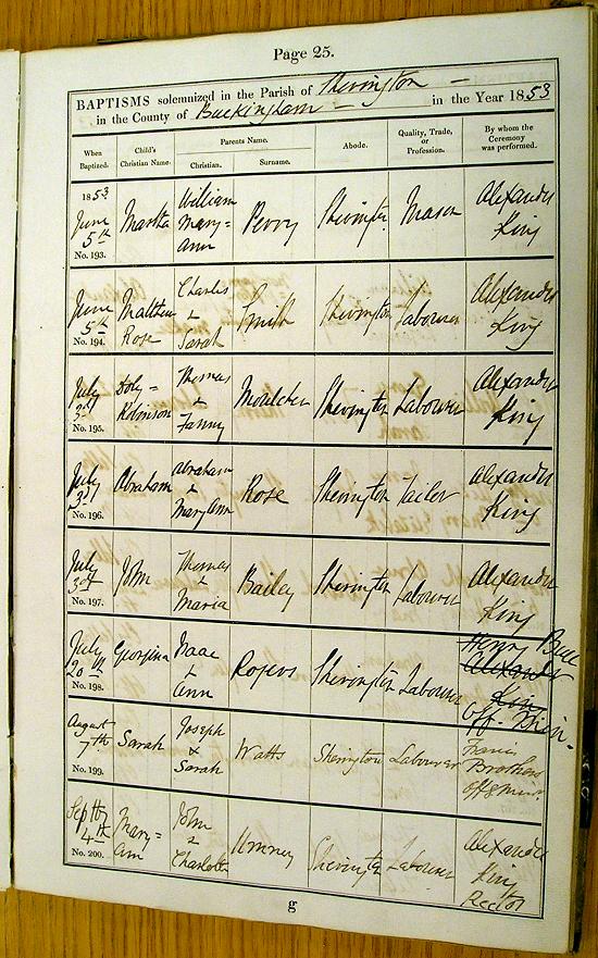 The St Laud’s Parochial Church Council has given Sherington Historical Society permission to take digital photographs of each page in all the Parish Registers, for use in family history research. However, entries less than 100 years old (i.e. after 1912) have not been copied.