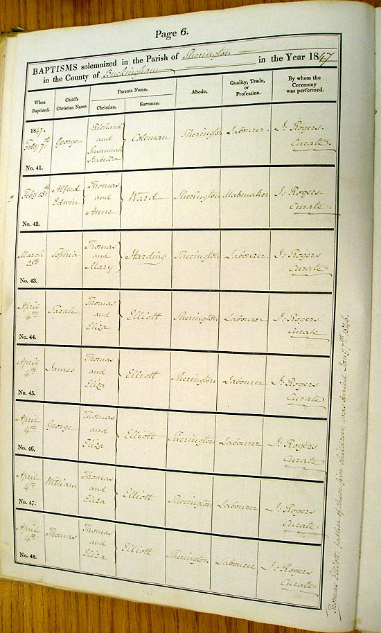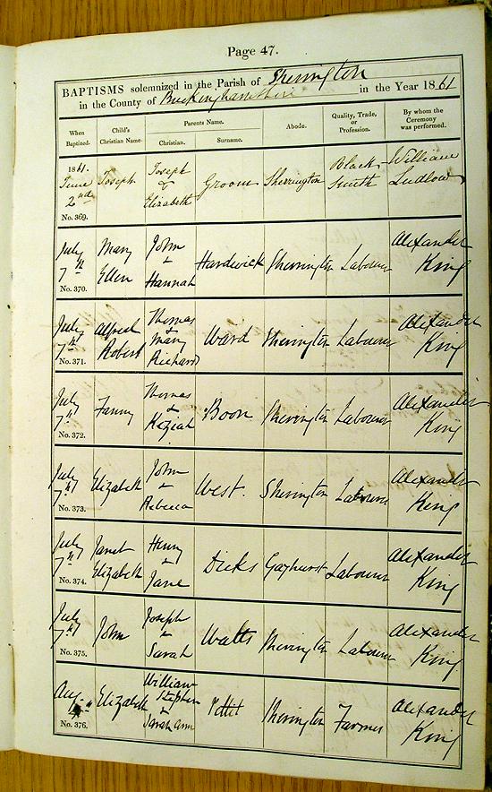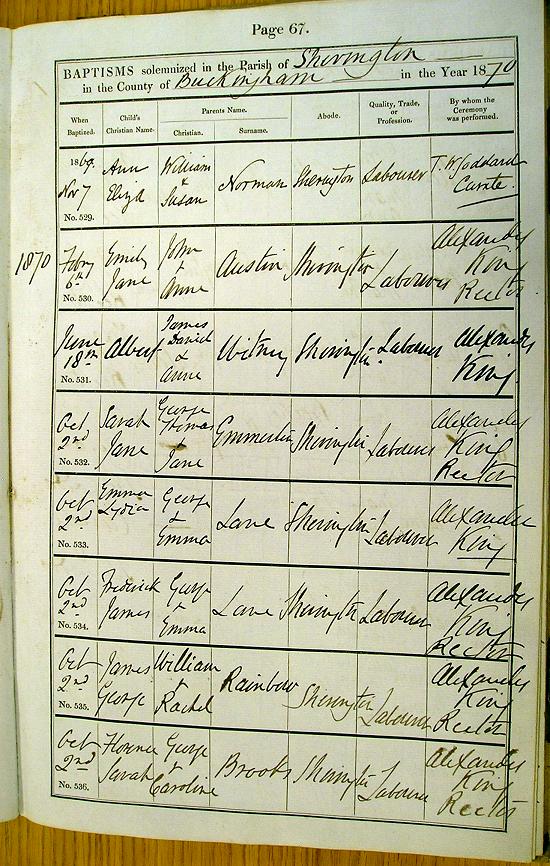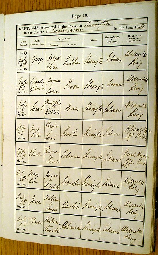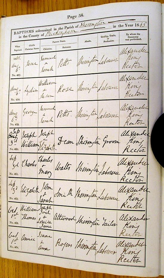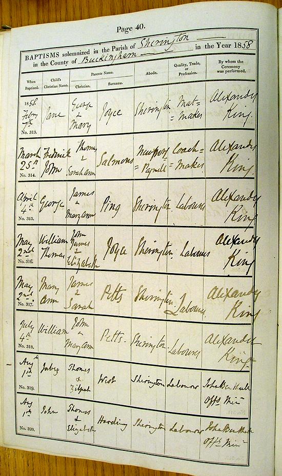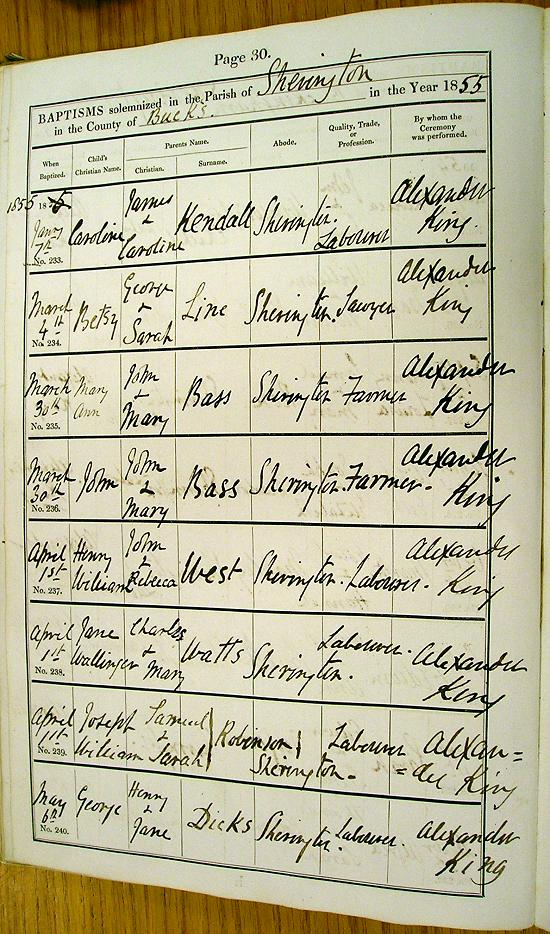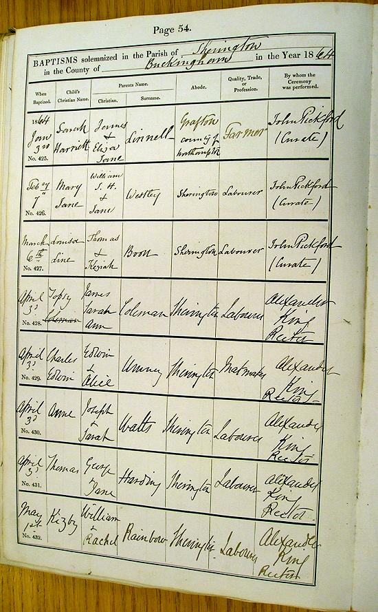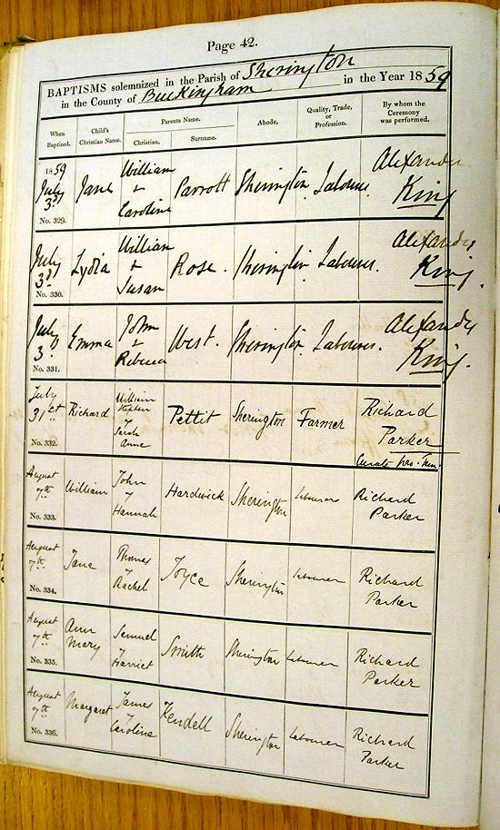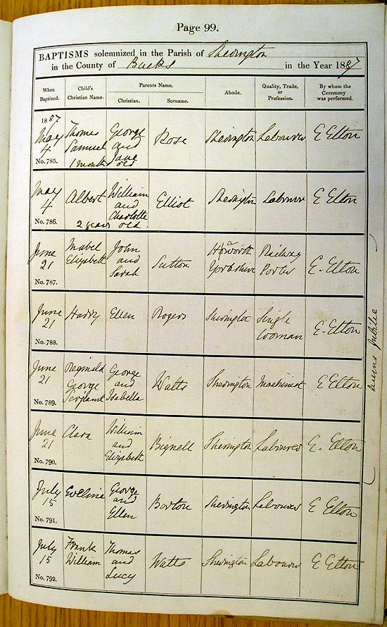 The St Laud’s Parochial Church Council has given Sherington Historical Society permission to take digital photographs of each page in all the Parish Registers, for use in family history research. However, entries less than 100 years old (i.e. after 1912) have not been copied.