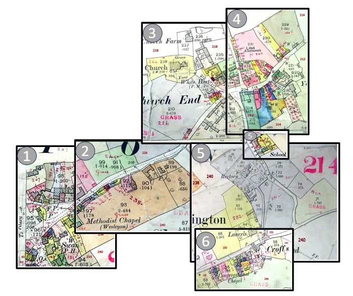 The absence of house numbers in the village at the time of the 1911 Census has meant that it has not been possible to pinpoint where each family actually lived, except for a few in named buildings, as most addresses were simply recorded as ‘High Street’ or ‘Church End’.