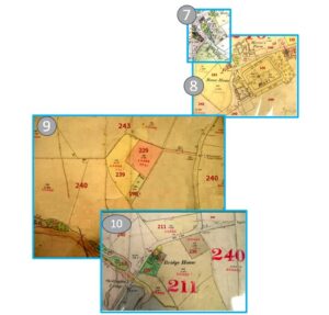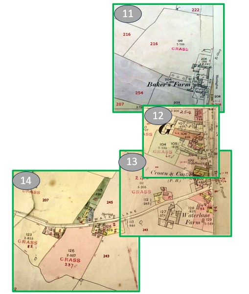 The Ordnance Survey maps that were current at the time (the 1900 1:2500 series) were marked up with the number of each plot of land and colour shaded to distinguish each plot and corresponding buildings.