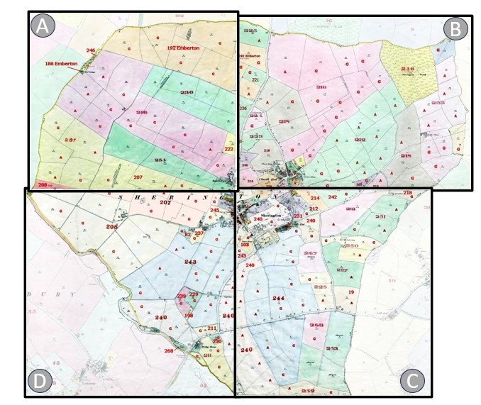 Most of the parish is covered by four Ordnance Survey sheets – the corner where these sheets join being just north of The Knoll. They extend from the west to the east parish boundaries, and from the Emberton boundary down to beyond Sherington Bridge. The extreme south of the parish, i.e. Far End Farm, is on a separate sheet.
