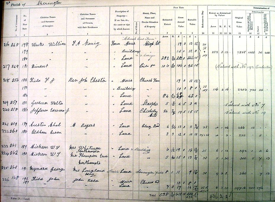219 | Goodman | Walter | Rev John Chester | Chicheley | Farm Land | Slaydes |