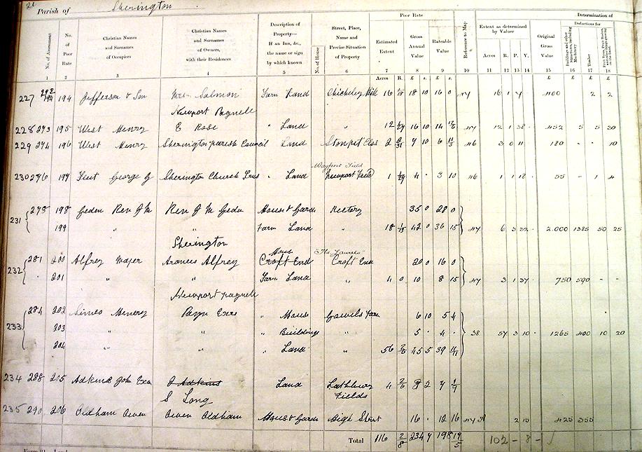 231 | Geden | Rev J M | Rev J M Geden | Sherington | House & Garden, Farm Land | Rectory |