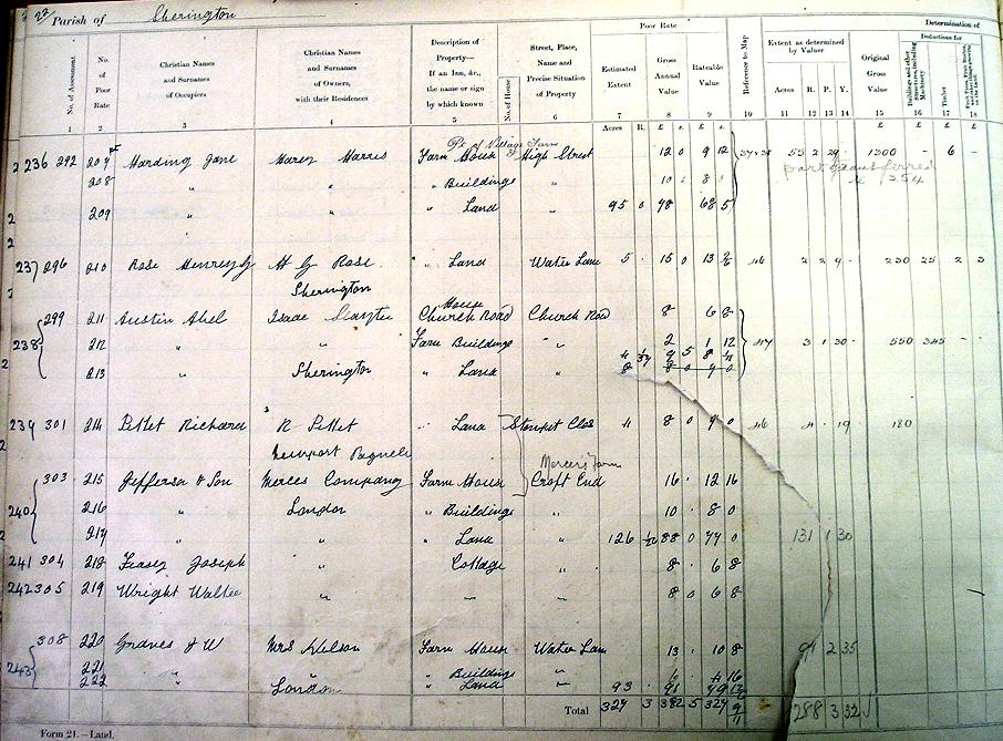 237 | Rose | Henry G | H G Rose | Sherington | Farm Land | Water Lane |