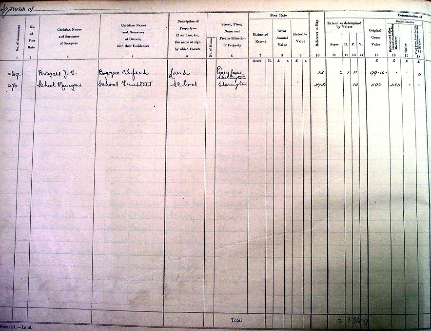 269 | Burgess | J. T. | Bowyer Alfred | Land | Perry Lane Sherington | |