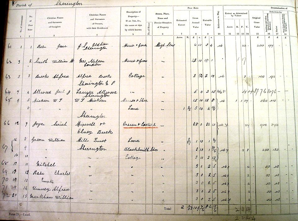 69 | Rose | Charles | Hills Trust | Sherington | Cottage | High Street |