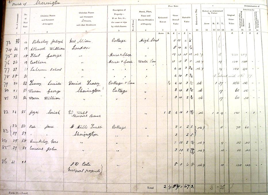 81 | Warren | William | David Feasey | Sherington | Cottage | Water Lane |