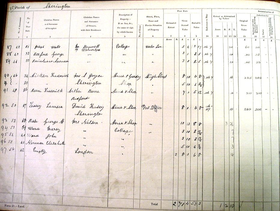 90 | Hickson | Frederick | Mrs S Joyce | Sherington | House & Garden, Shop | High Street |