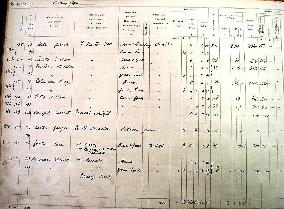 150 | - | - | F Penton Exor | House & Garden | Church End | |