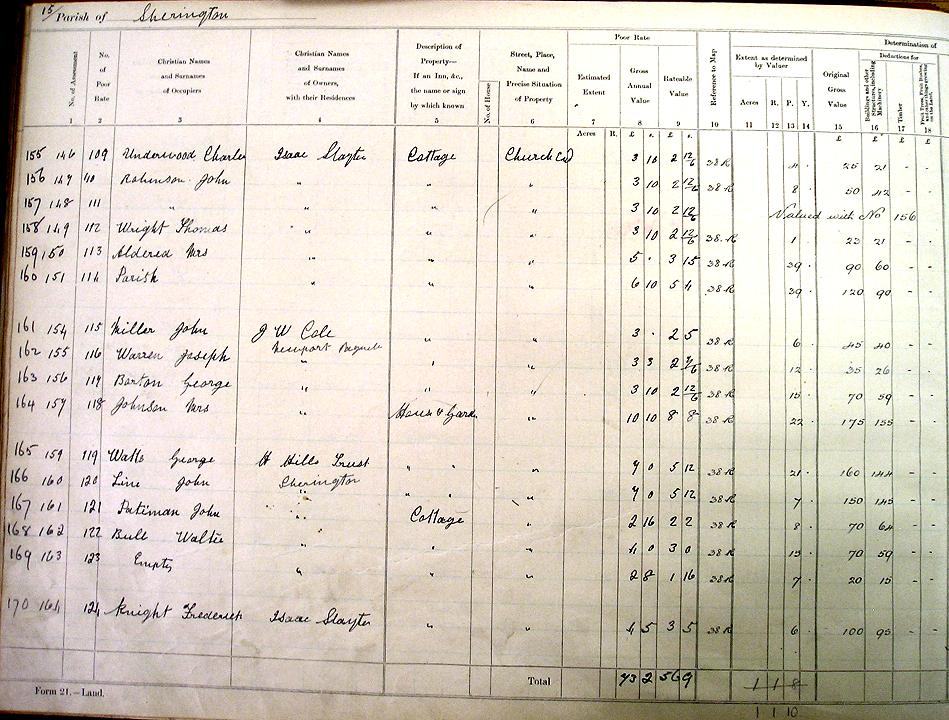 169 | Empty | H Hills Trust | Sherington | Cottage | Church End | |