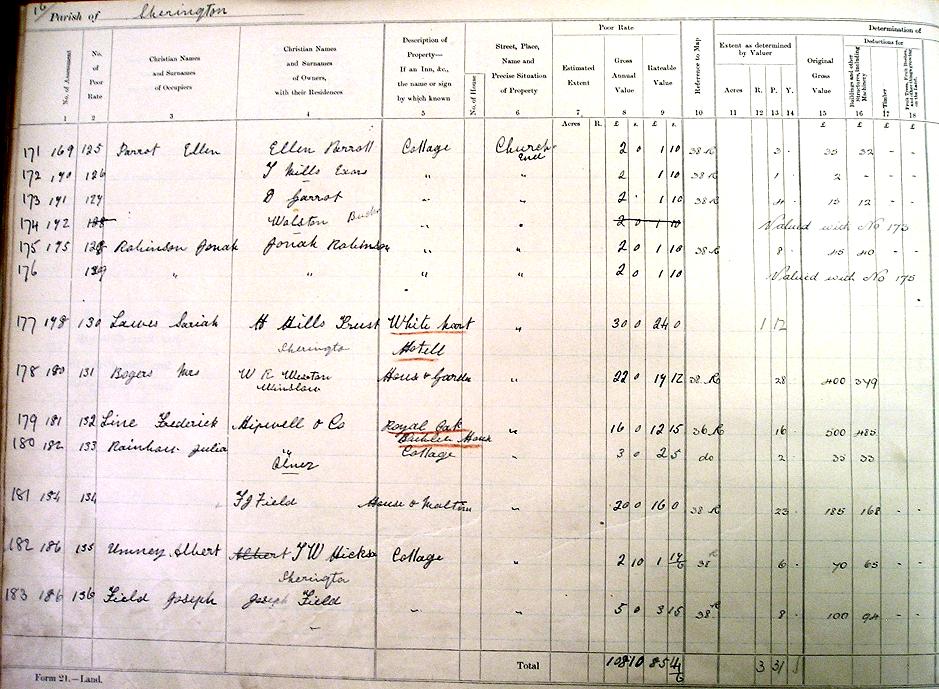 177 | Lawes | Sariah | H Hills Trust | Sherington | White Hart Hotel | Church End |