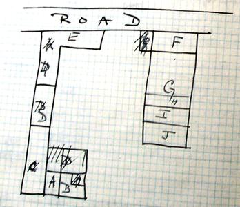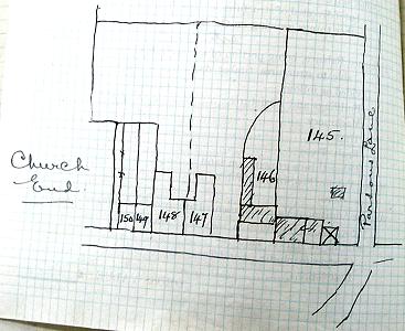 Note: This table lists the ‘overflow’ information from the second double page spread in the Field Books. Only some of the properties have this information. It includes sketches of the farmyards and lists of the church trustees.