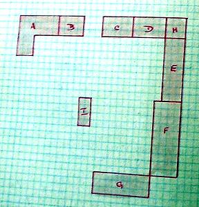 233 | A House B 2 B&S B floor pigstyes C B,W&Th stable 4, & corn room D B,W&Th open shed E B,W&Th Calf ho. F B,W&I B floor barn G B,W&Th open shed H B,W&Th B floor mixing ho. I 2 B&I B floor store rooms |