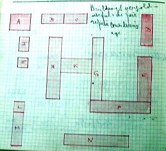 218 | A B,S&Th barn B S&T open shed 6 C B,W&I B floor Cow ho. 5 D B,S&T B floor calf ho. E B,S&T Cobble floor stable 6 F 2 B,W&Th Looseboxes G B&T B floor nag stable 3 H B&T B floor trap ho. I B,W&T Cart shed 4 J B,W&Th open shed K 3 B&S B floor pigstyes L B,W&T open shed 4 |