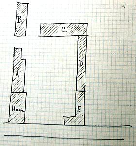 235 | B&S heating house B&S bottling stores, containing bottling & washing plant W&I Engine house, oil engine, 3 and half H.P. Crossley W&I Covered shed fitted with sawing bench B&Th store houses B,W&S B floor stable 2 W&T Cart shed 3 2 B&T B floor pigstyes W&T B floor stable 2 W&T Cart hovel 3 & garden |
