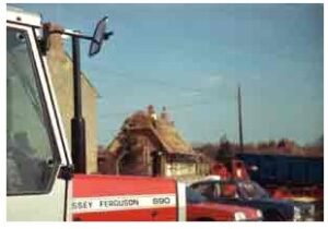 Harriet’s End had its thatch roof burned off in 1981/82. They were to have a small repair done to the thatch that hot dry summer. A load of dry thatch had been unloaded onto the side of the road, and the thought is that a cigarette end from a passing car set fire to this dry straw and the wind fanned this to a flame. The men from Rogers saw this happen but before anything could be done the flaming straw had blown up into the air and landed on the roof of Harriett’s End, where, in the words of Brian Holpin it seemed to “explode into flames.” It went up with “an explosive whoosh”. Many of the local villagers and the workers from Rogers rescued as much furniture from the house as was possible and the fire engine from Newport arrived very quickly. Bill Norton, landlord of the Swan, provided the firemen with refreshments. It was a hot disastrous day.