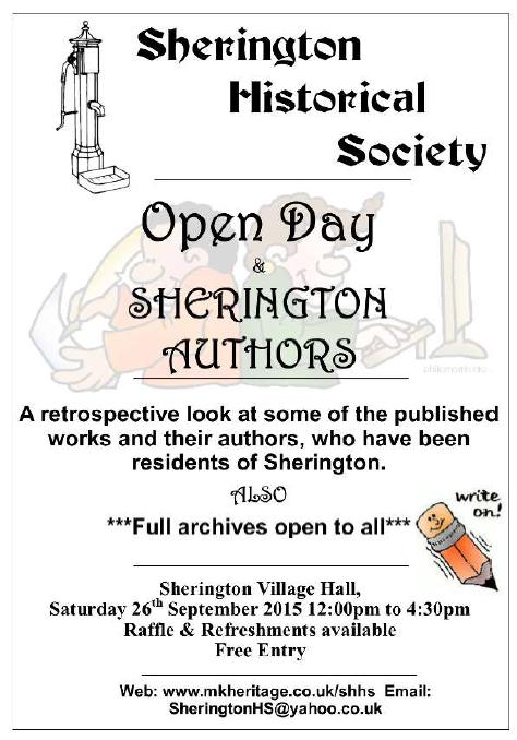 The annual Open Day was held on Saturday 26 September 2015 in the Village Hall. The theme this year was ‘Sherington Authors’, taking a retrospective look at some of the published works and their authors who have been residents of Sherington.
