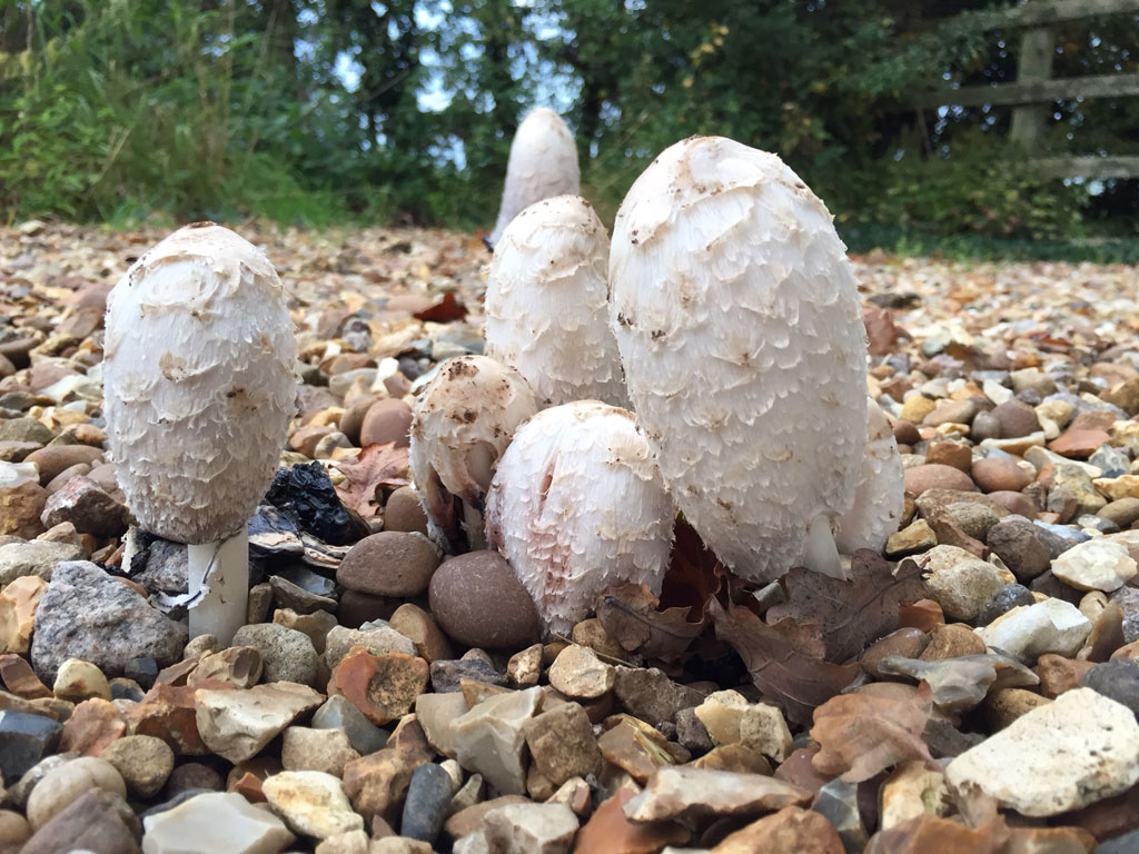 Shaggy inkcaps emerging from gravel, Water Lane, 30.09.17, 0743