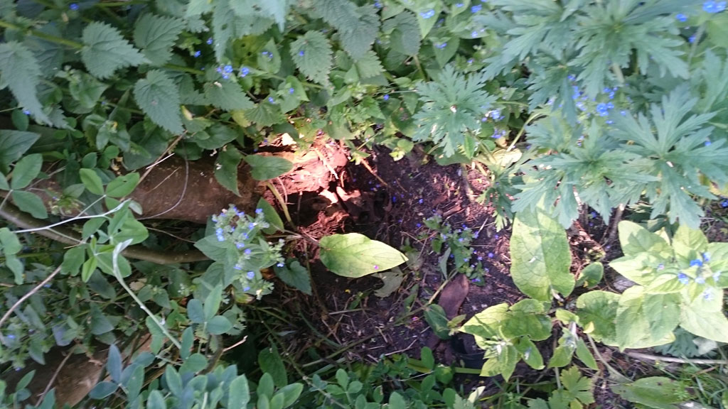 Fox hole found in my garden, The Knoll, 25.05.17, 1804