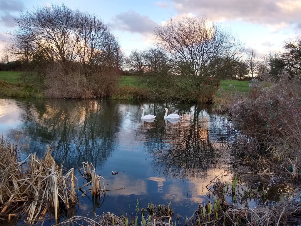 Swans on Bancroft pond, just before sunset, 07.02.19