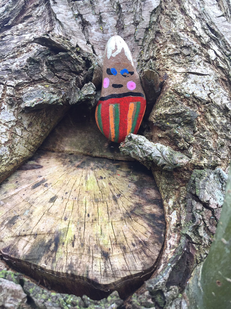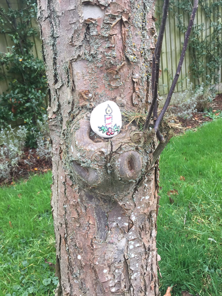 Decorated stone in tree