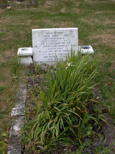 In loving memory of LESLIE JAMES FRENCH late Royal Marines and beloved youngest son of GEORGE and ELLEN FRENCH who died through active service Oct. 28th 1941 aged 20 years. The call came and he answered. Also CLIFFORD their second son who died Oct 27th 1923 aged 8 years Interred in Kingsthorpe cemetery, Northampton. Click for Photo |