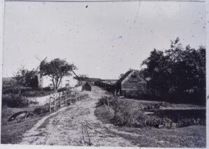 Certainly the later version of this wind mill (of which photos exist) was a post-mill. The traditional image of a windmill is stone or brick-built, with a wooden-domed top, to which the sails are attached. This top part can be spun around to face the wind. A post-mill was an entirely wooden affair. The whole building rested on a central post and could be turned around to face the wind by means of a long tailpiece at the base. As these mills were built of wood, it is certain that from time-to-time they were renewed and replaced on the same sites.