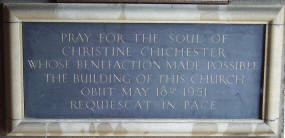 The need for a larger church was becoming more and more a matter of very great urgency as the old ‘hut’ church could no longer accommodate the numbers who were coming to Mass. People now had to stand not only in the porch, but outside, and almost in the street. Indeed, I recall that on Easter Sundays in the old church, the only way possible to deal with the large number of communicants was for those who had received to go out of the church by the back door, walk down the street and enter again by the front door! Whilst this procedure was good publicity, it could not go on like that for long. By now, the end of 1951, as I have said, we had approximately £8,000 in the Building Fund, a good sum of money but insufficient to build the lovely spacious church we now have. How then did it come to be built? Most people know by now that we were enabled to build our lovely church by the kindness and generosity of Miss Christine Chichester. Very few people, though, know how she came to leave a legacy of some £8,000 to us. So now, for posterity here is the true story of how we came to get it. I have always regarded what happened as Providential, and an answer to prayer.