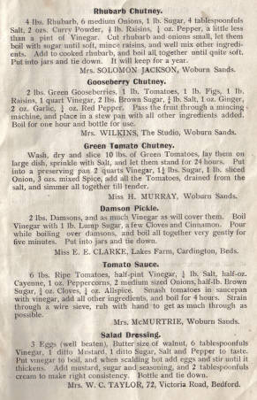 | Rhubarb Chutney | Mrs Solomon Jackson | Woburn Sands |