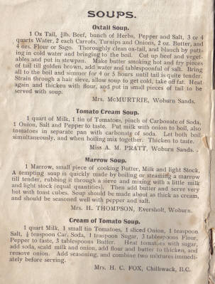 | Tomato Cream Soup | Miss A M Pratt | Woburn Sands |