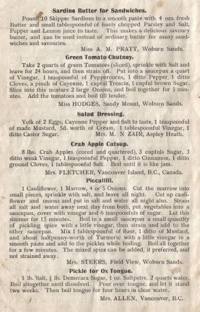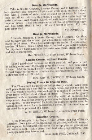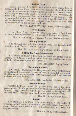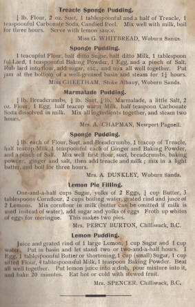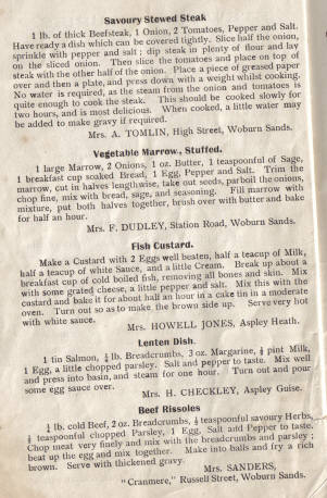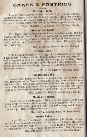 It would have been a good idea, as everyone who had submitted a recipe would want to buy a copy! Several of the recipes came from addresses in Canada, which I presumed had come from the girls who married some of the Canadian soldiers who were stationed here in World War One, but Paul Ferguson, curator of the Chilliwack Museum, has attempted to identify the individuals listed in the book from Chilliwack, Canada, and none of them appear to have a direct connection to Woburn Sands. He commented: