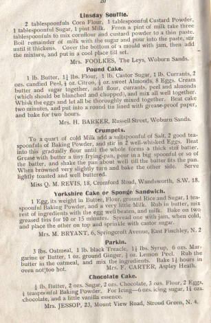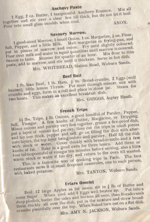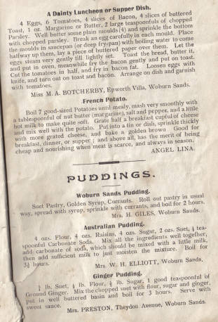 | Savoury Puffs | Miss Holmes | "The Shrubbery", Woburn Sands |