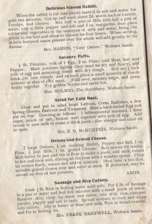 | Delicious Stewed Rabbit | Mrs Harris | "Cosy Corner", Woburn Sands |