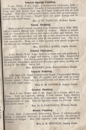 | Treacle Sponge Pudding | Mrs J W Tansley | Woburn Sands |
