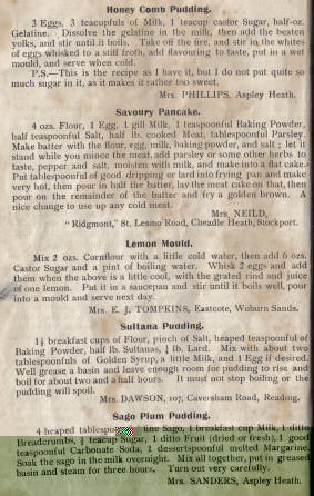 | Honey-comb Pudding | Mrs Hinge | Aspley Heath |