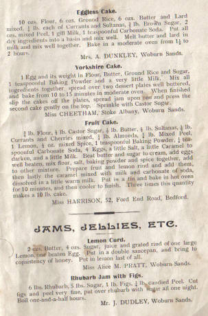 | Yorkshire Cake | Miss Cheetham | "Stoke Albany" Woburn Sands |