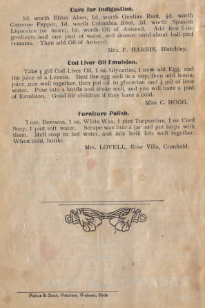 | Furniture Polish | Mrs Lovell | Rose Villa, Cranfield |